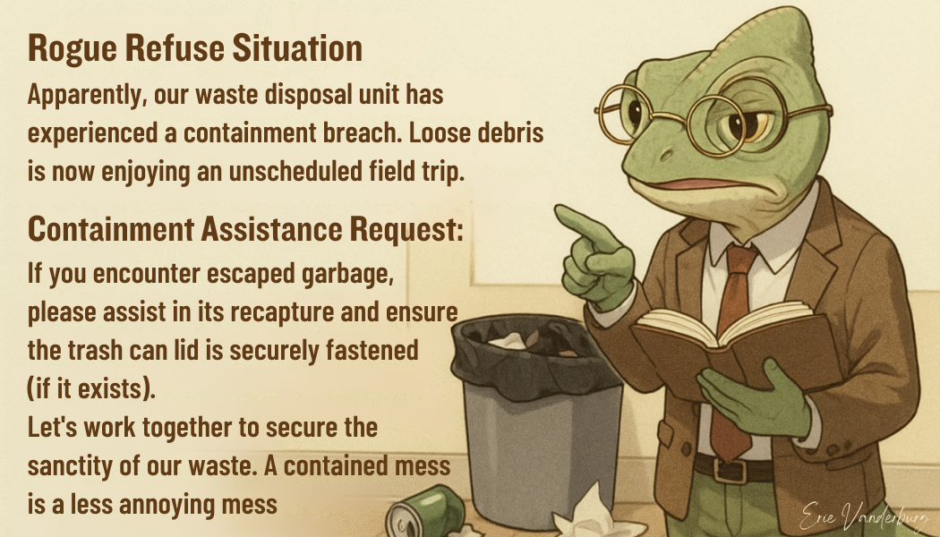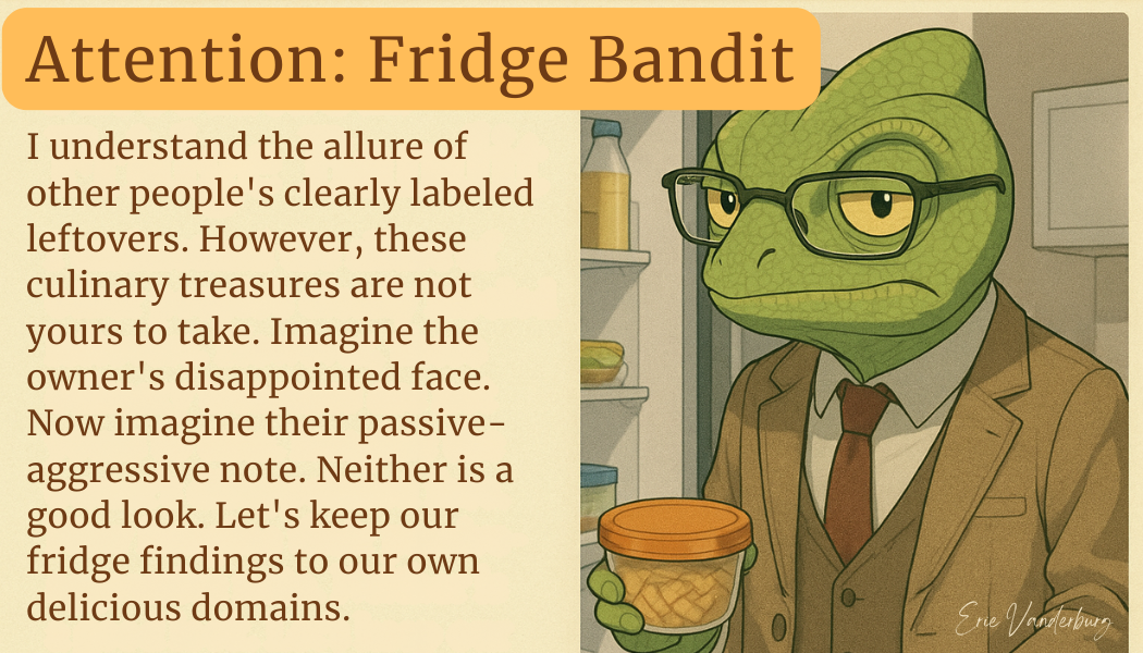 Make shared spaces more enjoyable for everyone. These seven cards offer a lighthearted yet effective way to address everyday annoyances. Each card conveys a clear message with a touch of humor, encouraging positive change without resorting to confrontation. Perfect for offices, homes, and communities. Start fostering better habits, one card at a time! No charge. I know you’d just download them anyway. Download and print at your favorite business card site.